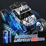 2,4GHz Fernbedienungssystem: Bietet es ein stabiles Signal und verfügt über eine störungsfreie Funktion. Es kann Signalstörungen verhindern, wenn mehrere Fahrzeuge gleichzeitig spielen. Die Kontrollentfernung beträgt ca. 50 M. Können Ihre Kinder und ihre Freunde das Auto störungsfrei fahren und treiben.