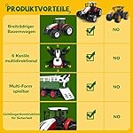 【Langlebige Gummireifen】Dieser traktor mit anhänger ist mit großen texturierten Reife, mit breiteren Vorder- und Hinterreifen, und mit dem gleichen Profil wie die Originalreifen für hervorragende Rutschfestigkeit, Grip und Stoßdämpfung ausgestattet. Das hochwertige Gummimaterial ist langlebig und kann Straßenerschütterungen wirksam reduzieren. Die Gummireifen sind mit klaren linearen Texturen für verschiedene Straßen geeignet.