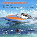【Capsize Recovery & einfach zu steuern】 Durch die automatische 180 ° -Rücklaufwiederherstellung hat das Wassergeschwindigkeitsboot keine Angst vor Kentern oder scharfen Kurven und sorgt für eine korrekte Reise. Im Vergleich zu einer Radfernbedienung wird diese Steuerung über zwei Hebel bedient, sodass Kinder und Erwachsene die Geschwindigkeit und Richtung (rückwärts, vorwärts, links und rechts) problemlos ändern können.