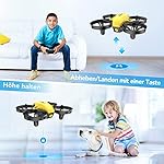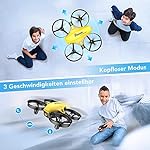 【Neuestes Modell】Das vollständig abgedeckte Gehäuse aus ungiftigem Weichplastik reduziert die Auswirkungen fallender Flugzeugkollisionen. Allseitige Schutzvorrichtungen schützen Drohnenpropeller vor dem Aufprall auf Gegenstände oder Kinder. Es ist ganz sicher für Kinder zu spielen. Die Drohne fliegt dank der neuesten 6-Achsen-Kreisel-Flugsteuerungssysteme stabiler in der Luft